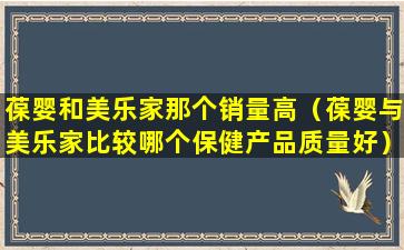 葆婴和美乐家那个销量高(葆婴与美乐家比较哪个保健产品质量好)
