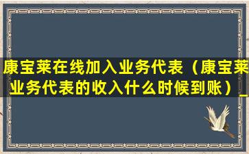 康宝莱在线加入业务代表(康宝莱业务代表的收入什么时候到账)
