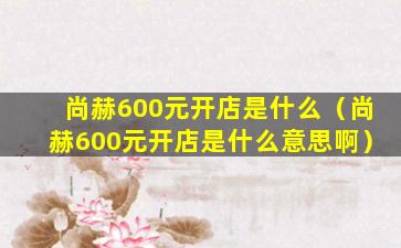 2、尚赫600元开店是什么意思啊