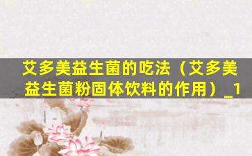 艾多美益生菌的吃法(艾多美益生菌粉固体饮料的作用)