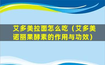 艾多美拉面怎么吃(艾多美诺丽果酵素的作用与功效)