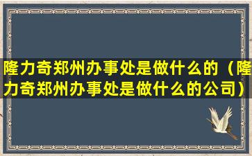 隆力奇郑州办事处是做什么的(隆力奇郑州办事处是做什么的公司)