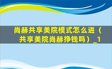 尚赫共享美院模式怎么进(共享美院尚赫挣钱吗)