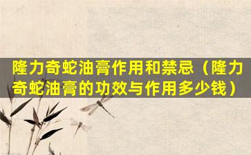 隆力奇蛇油膏作用和禁忌(隆力奇蛇油膏的功效与作用多少钱)