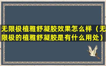 无限极植雅舒凝胶效果怎么样(无限极的植雅舒凝胶是有什么用处)