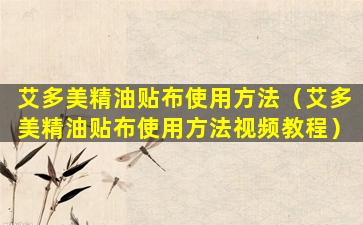 艾多美精油贴布使用方法(艾多美精油贴布使用方法视频教程)