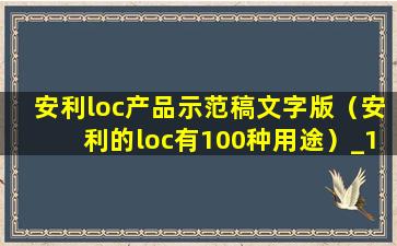 安利loc产品示范稿文字版(安利的loc有100种用途)