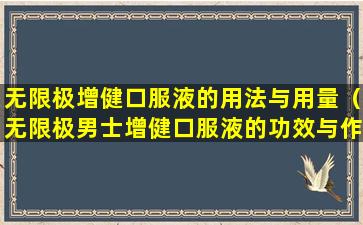 无限极增健口服液的用法与用量(无限极男士增健口服液的功效与作用的价格)
