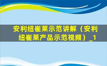 安利纽崔莱示范讲解(安利纽崔莱产品示范视频)