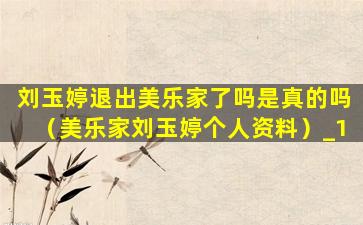 1、刘玉婷退出美乐家了吗是真的吗