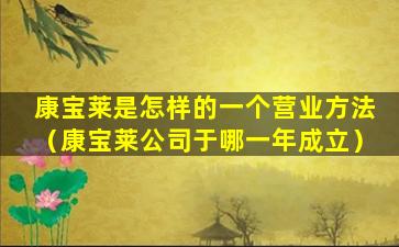 康宝莱是怎样的一个营业方法(康宝莱公司于哪一年成立)