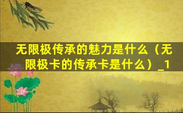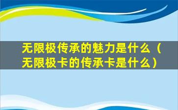 无限极传承的魅力是什么(无限极卡的传承卡是什么)