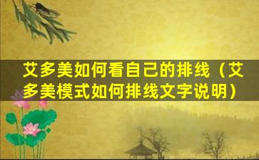 艾多美如何看自己的排线(艾多美模式如何排线文字说明)