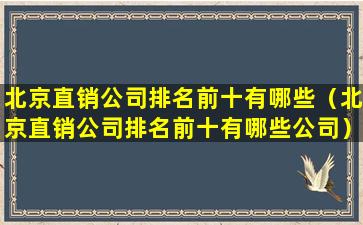 北京直销公司排名前十有哪些(北京直销公司排名前十有哪些公司)