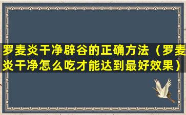 罗麦炎干净辟谷的正确方法(罗麦炎干净怎么吃才能达到最好效果)