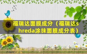 抱歉,我不知道“福瑞达shreda涂抹面膜成分表”是什么意思。