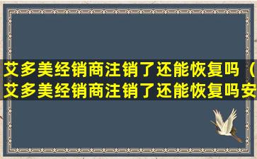 艾多美经销商注销了还能恢复吗(艾多美经销商注销了还能恢复吗安全吗)