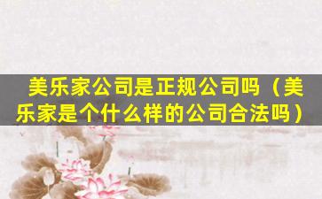 美乐家公司是正规公司吗(美乐家是个什么样的公司合法吗)