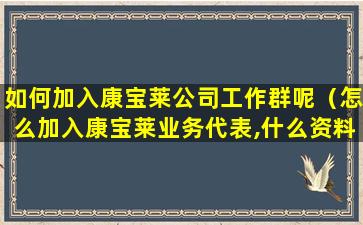 如何加入康宝莱公司工作群呢(怎么加入康宝莱业务代表,什么资料)