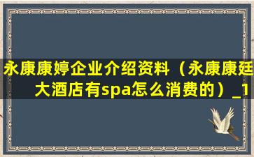 永康康婷企业介绍资料(永康康廷大酒店有spa怎么消费的)