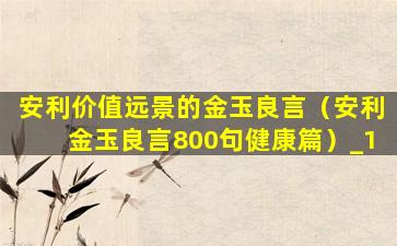 安利价值远景的金玉良言(安利金玉良言800句健康篇)