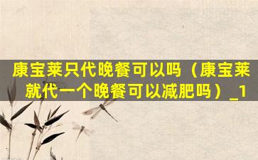 康宝莱只代晚餐可以吗(康宝莱就代一个晚餐可以减肥吗)