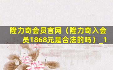 隆力奇会员官网(隆力奇入会员1868元是合法的吗)