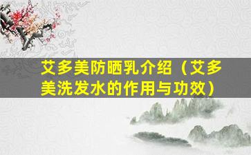 艾多美防晒乳介绍(艾多美洗发水的作用与功效)