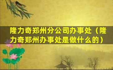 隆力奇郑州分公司办事处(隆力奇郑州办事处是做什么的)