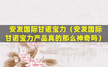 安发国际甘诺宝力(安发国际甘诺宝力产品真的那么神奇吗)