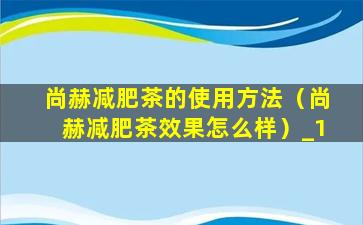 尚赫减肥茶的使用方法(尚赫减肥茶效果怎么样)