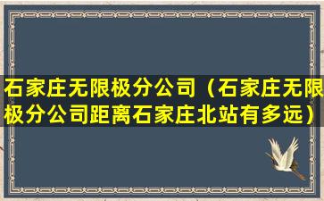 石家庄无限极分公司(石家庄无限极分公司距离石家庄北站有多远)