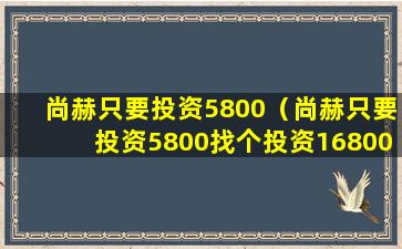 尚赫只要投资5800(尚赫只要投资5800找个投资16800的可以挣钱吗)