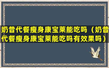 奶昔代餐瘦身康宝莱能吃吗(奶昔代餐瘦身康宝莱能吃吗有效果吗)