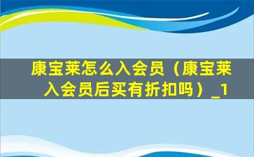 康宝莱怎么入会员(康宝莱入会员后买有折扣吗)