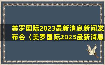 美罗国际2023最新消息新闻发布会(美罗国际2023最新消息新闻发布会视频)