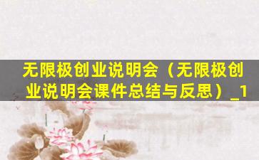 无限极创业说明会(无限极创业说明会课件总结与反思)