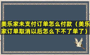 美乐家未支付订单怎么付款(美乐家订单取消以后怎么下不了单了)