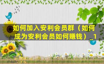 如何加入安利会员群(如何成为安利会员如何赚钱)