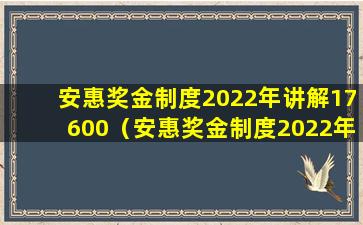安惠奖金制度2022年讲解17600(安惠奖金制度2022年讲解)