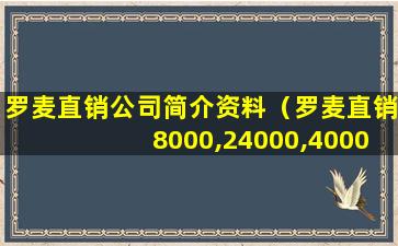 罗麦直销公司简介资料(罗麦直销8000,24000,40000怎么做的)