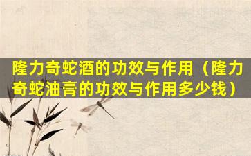 隆力奇蛇酒的功效与作用(隆力奇蛇油膏的功效与作用多少钱)