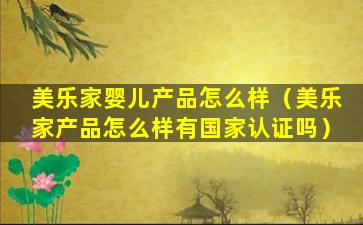 美乐家婴儿产品怎么样(美乐家产品怎么样有国家认证吗)