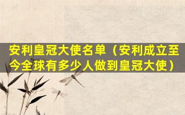 安利皇冠大使是安利公司中取得最高荣誉的直销商级别。以下是一些著名的安利皇冠大使名单: