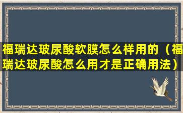 福瑞达玻尿酸软膜怎么样用的(福瑞达玻尿酸怎么用才是正确用法)