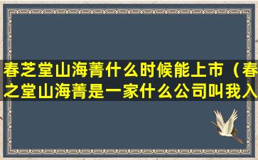 春芝堂山海菁什么时候能上市(春之堂山海菁是一家什么公司 叫我入股 可信么)