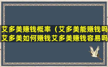 艾多美赚钱概率(艾多美能赚钱吗艾多美如何赚钱艾多美赚钱容易吗)