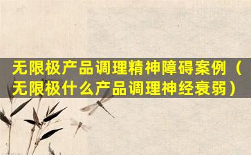 抱歉,但我没有关于“无限极产品调理精神障碍案例”的信息。如果您有精神疾病的担忧,最好咨询合格的心理健康专家。