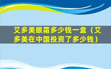 艾多美眼霜多少钱一盒(艾多美在中国投资了多少钱)
