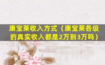 康宝莱收入方式(康宝莱各级的真实收入都是2万到3万吗)